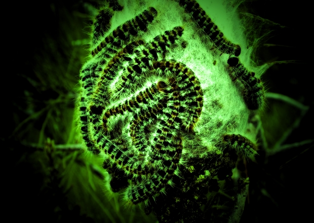 Otra oruga se abre paso por el meato del glande y grito de miedo y pánico. Grito tanto que escupo la oruga que se había metido en el paladar y queda muerta por el golpe contra el suelo con sus púas aplastadas por la sangre y la saliva.