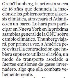 Y si yo tuviera pasta, también haría un crucero de mil putos días. No te jode la pija… A sus dieciséis añitos y tan petarda. Es una maravilla tener dinero y esa decadente forma de perder el tiempo. A su edad debería estudiar, no timar o creerse una redentora o iluminada. Aunque hoy día estudiar no indica inteligencia. El 80% de la población que ha estudiado, apenas consigue entender lo que lee a partir de la cuarta línea del primer párrafo. Vivimos una época en la que los idiotas copan la atención del resto de sus colegas anónimos y constituye un continuo insulto a la inteligencia leer sus noticias mierdosas. ¿De verdad puede entrar cualquier cosa en la ONU? ¿Lo que cague durante la travesía, lo envasará al vacío y se lo llevará a casa a reciclar? Y seguro que se alimenta exclusivamente de conservas de garbanzos criados con esmero, piedad y bienestar. Mierda…