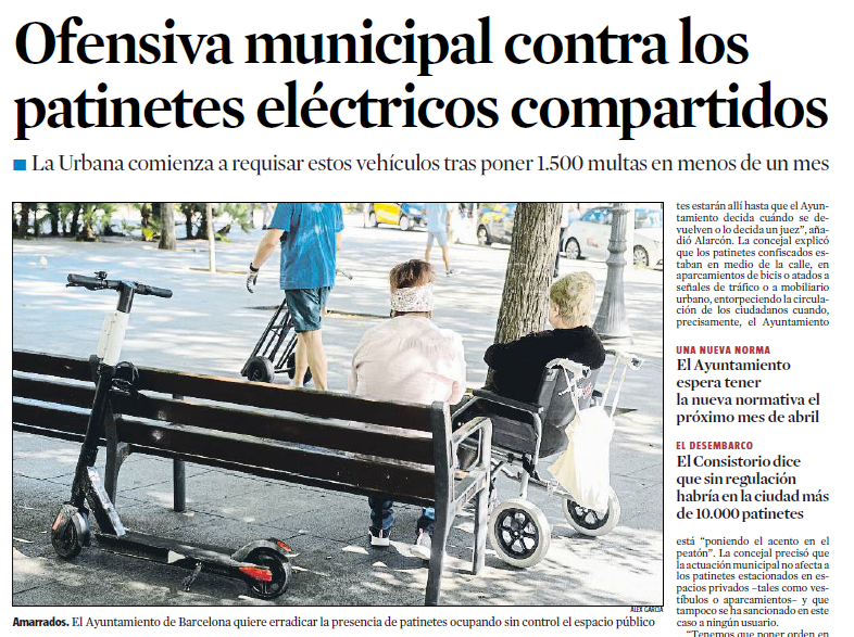 Por lo visto los patinetes son muy grandes, ocupan mucho espacio y sobre todo, le hacen la competencia a la mierda de transporte público barcelonés. Pero lo que es peor: son agresivos, sus ruedas tienen cuchillas que amputan los pies de los peatones. De ahí ese chorro de multas que ha puesto la guardia mora de Colau.