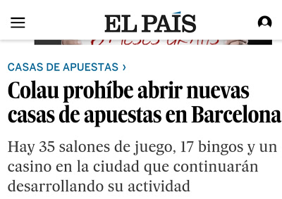 Ayuntamiento de Barcelona ha prohibido abrir nuevas casas de apuestas, juegos