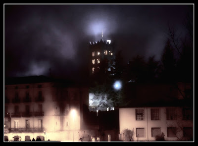 Podría ser el castillo de Frankenstein; pero solo es el vulgar campanario de un monasterio, nada más alejado de la imaginación.