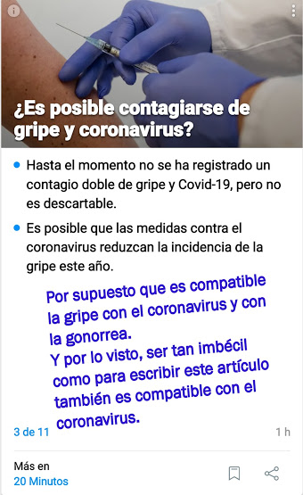 Los que estaban enfermos de diabetes, de diarrea, diarrea mental, diarrea cobarde, del corazón, del hígado, de los riñones, los que tenían dolor de cabeza, caries y los que se masturbaban compulsivamente mirando al indigente Fernando Simón dar el parte diario de muertos e infectados en la tele; todos se contagiaban.