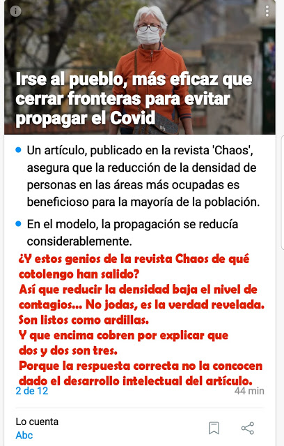 El coronavirus, el principal problema orgánico que provoca en las reses humanas es que pudre el cerebro de las prostitutas (vale para machos y hembras) que cobran por escribir idioteces en los medios de información. Al menos, Epi y Blas tenían gracia al dar sus lecciones, mucha.