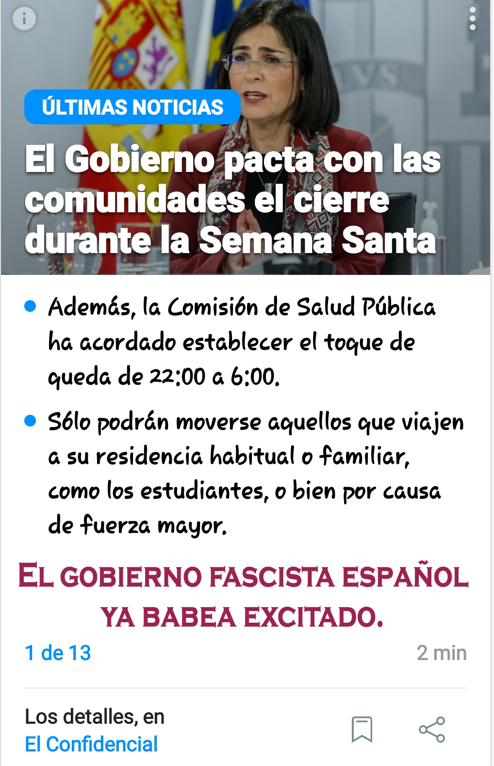 Y ya están pensando en el excitante fetichismo de Semana Santa, de encerrar, acosar y coartar todo tipo de libertades los dos Caudillos de España, sus secuaces y sus caciques autonómicos.