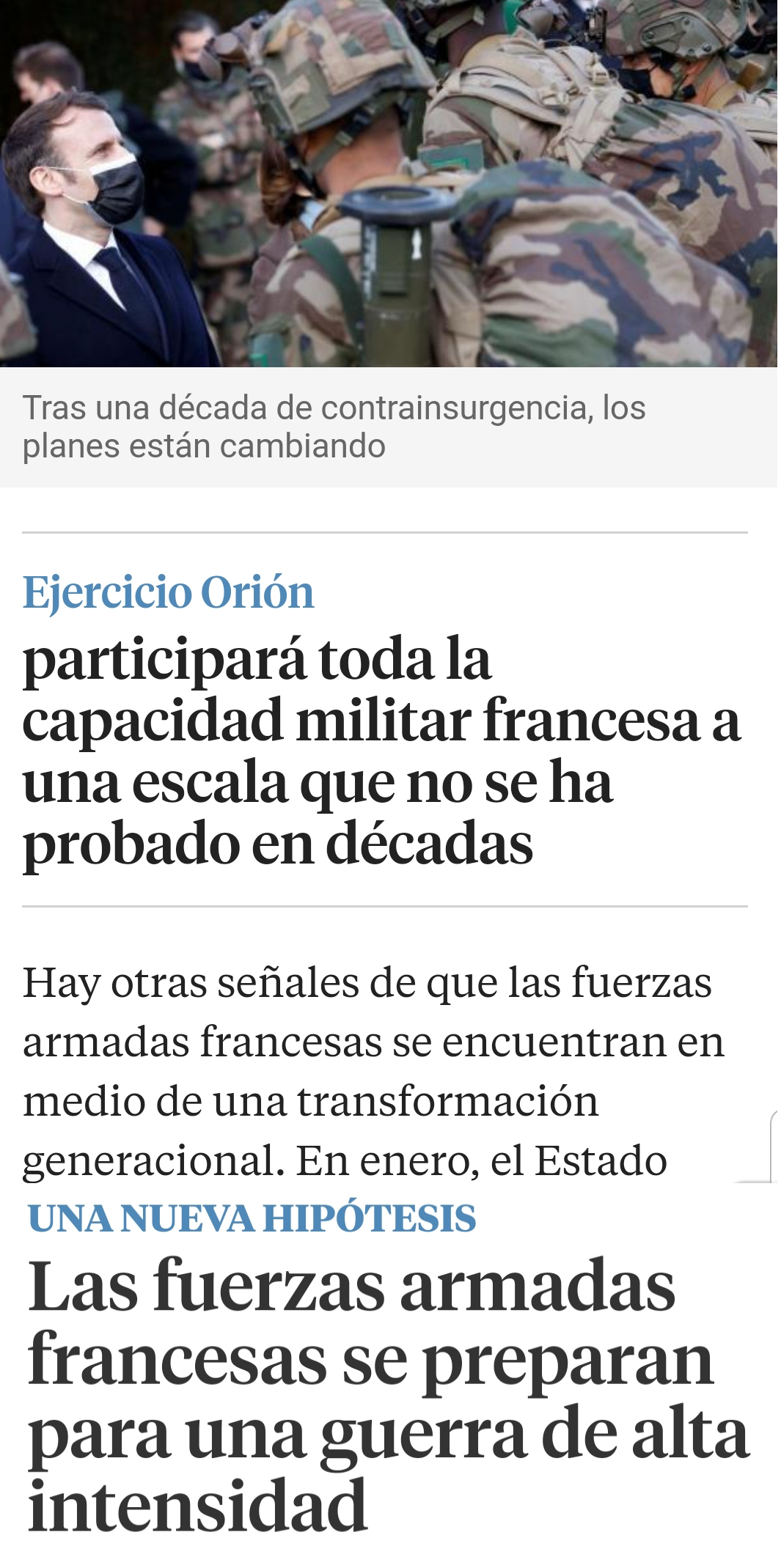 Toda la mentira completa de la noticia en: https://www.lavanguardia.com/internacional/20210330/6616738/fuerzas-armadas-francesas-preparan-guerra-alta-intensidad.html