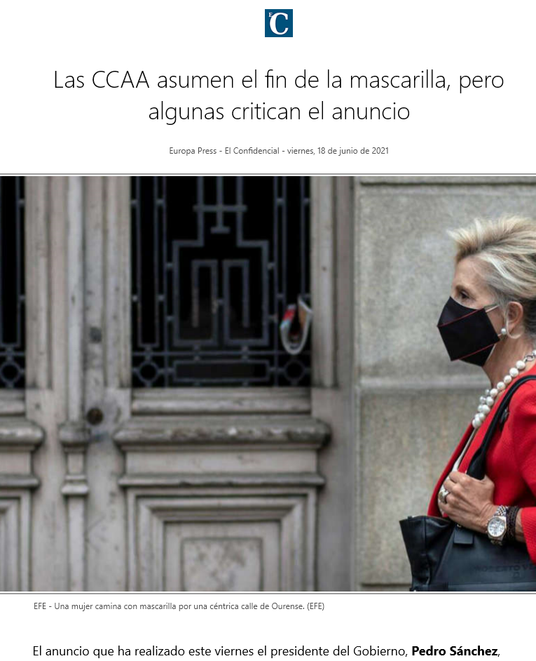 Ya estamos con la mierdosa historia de siempre. El Caudillo del nuevo y normal fascismo español ha dictado que la próxima semana fuera bozales en espacios abiertos. Y claro, los Caciques Autonómicos fascistas temen perder su poder y ya avisan que no será tan fácil devolver esa libertad con la que tienen atemorizados y enfermos a sus cabestros habitantes.