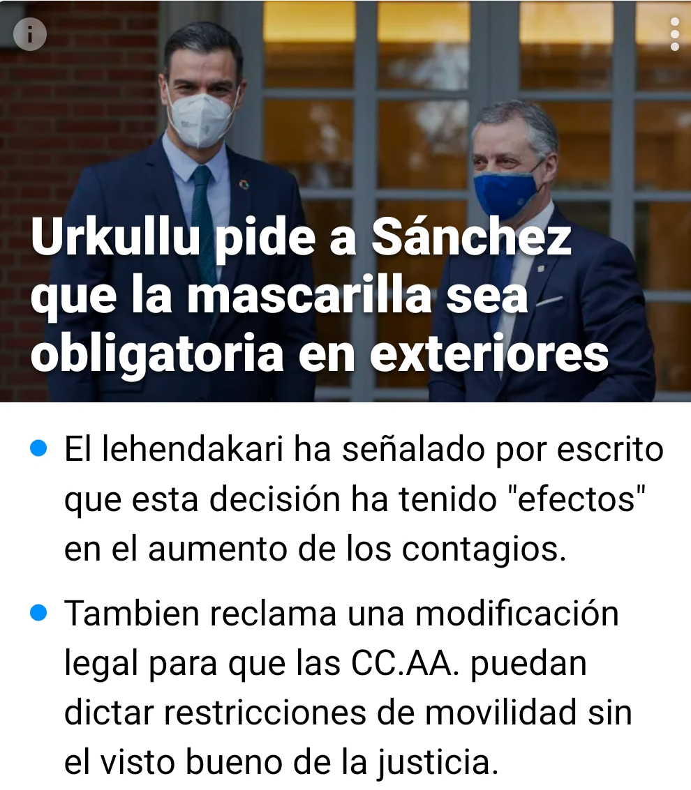 Nada… Que al bicho le ha encantado tener a sus (de su propiedad) habitantes respirando indecentemente, humillados, enfermos y serviles por medio del bozal las veinticuatro putas horas del día. Y eso de tener a sus habitantes encarcelados en sus casas le permite disfrutar a su placer y sin que nadie le moleste, de su propiedad el País Vasco.