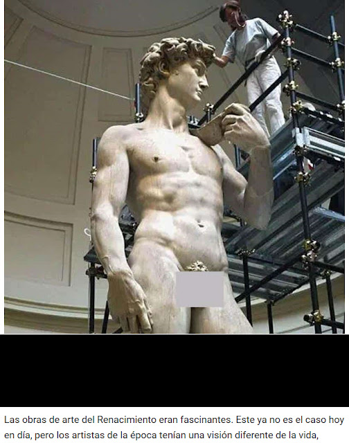 Los gobiernos y medios de comunicación están ejerciendo la censura más hipócrita y tiránica de todas las épocas. Contando la fecha con la que se realizó el David, incluso los curas eran mucho menos hipócritas que la chusma contemporánea que me rodea como medusas sin cerebro.