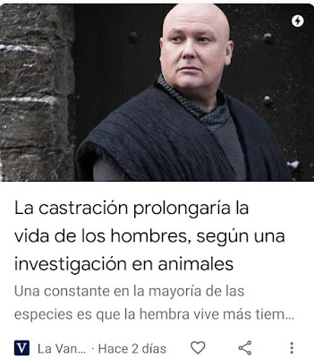 Y aquí tenemos una noticia que cualquiera habituado a leer una página cualquiera de un libro y entender lo que dice (es decir, con un mínimo básico de cultura), sabe que lo de los castrados y su mayor longevidad hace cientos de años que se conoce y aplica a la ganadería y a la ganadería humana. Cosa que los niños, al menos los que no llegaron a ser adoctrinados en la programación educativa del buenismo del fascismo de la democracia, sabían también.