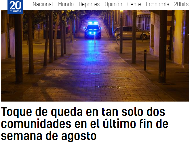 Para que el nuevo y normal estado penitenciario fascista español del coronavirus funcionara correctamente, era necesario que la prensa se prostituyera y se convirtiera en la nueva gaceta del nuevo franquismo. De ahí la tan patética tristeza del titular, que en caso de ser mínimamente honrada y decente en cuanto a ética periodística, en lugar de “en tan solo dos comunidades”, debería escribir “aun queda mucha gente acosada y encarcelada en dos comunidades”.
