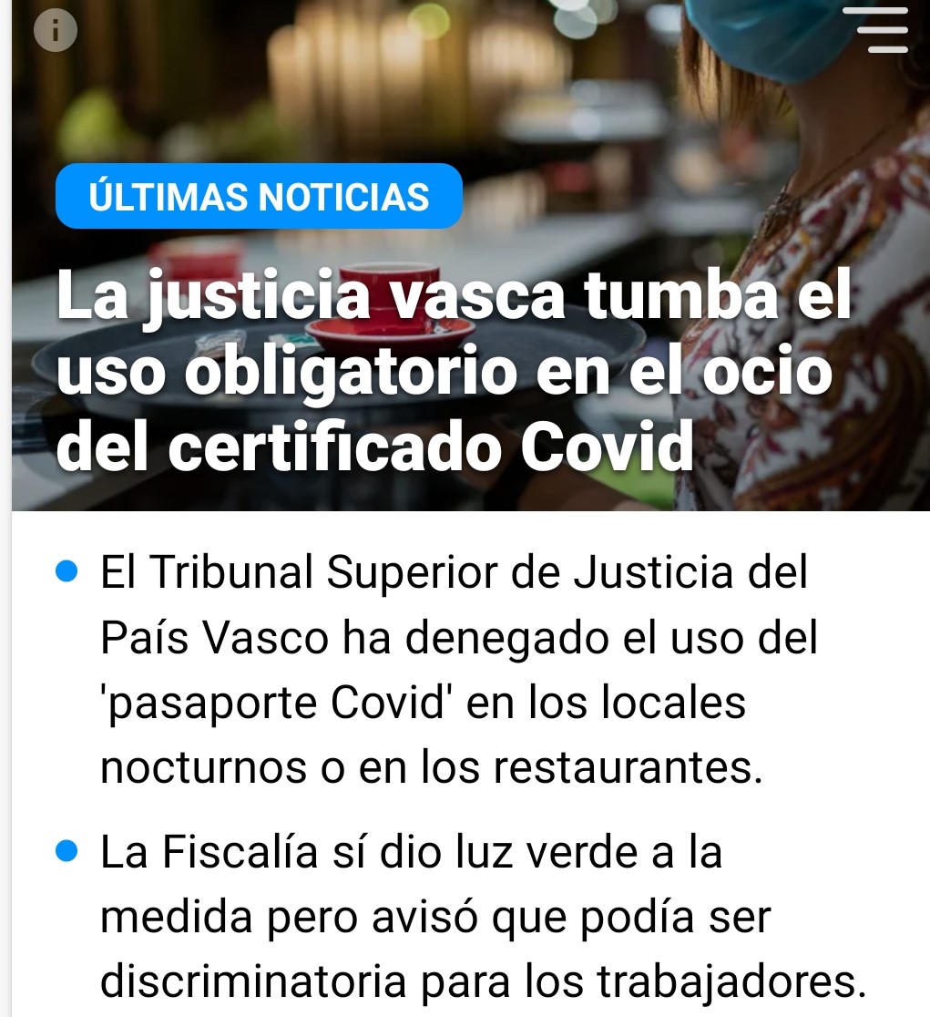 No sé cuanto durará, pero de momento: ¡Bravo por la justicia vasca! Por oponerse al neo nazismo del coronavirus, su cobardía y su afán de arruinar y encarcelar a sus ciudadanos.