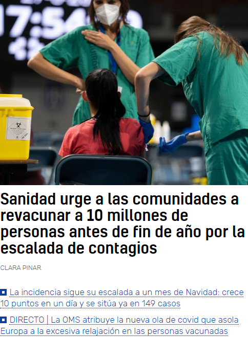 Tras cargar la culpa de los contagios por coronavirus a los “no vacunados” lanzando contra ellos mensajes de odio, extorsión, control y encarcelamiento por parte de las instituciones gubernamentales (solo han faltado escuadrones de la muerte liderados por “vacunados” para realizar una limpieza “étnica”). La OMS ha decidido, que es mejor revisar las dosis de la vacuna que no vacuna y que permite el contagio entre “vacunados” y “no vacunados”. A pesar de que en muchos lugares, solo se tiene acceso al “ocio nocturno” con el brazalete nazi o pasaporte de coronavirus, no se han frenado los contagios, porque la gripe y los catarros de invierno se contabilizan como coronavirus.