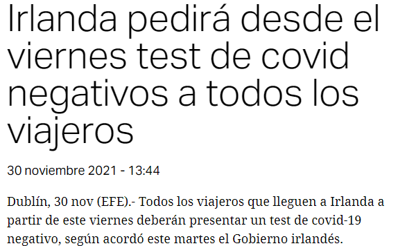 La Europa Nazi del Coronavirus es una casa de putas sin palanganero y sus ministros los chuloputas que no acaban de saber como estrangular del todo a sus infantilizados habitantes. Supongo que además de sacarse una pasta por las vacunas chutadas a su población, el gobierno irlandés ahora saca también un buen pellizco de los fabricantes del test del catarro del coronavirus.