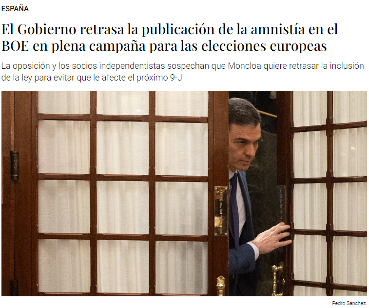 Dice que si retrasa la publicación en el BOE de la Corrupta Amnistía 2024, las españolas, españolos y españoles, como buenos lerdos que son, se olvidarán en un par de días, de cara a las próximas votaciones europeas, de ese delito de corrupción y estafa que ha cometido amnistiando a los políticos delincuentes que le han vendido sus votos para seguir calentando su poltrona. Y denigrar así a la casta paria o asalariada que no gozará jamás de ningún perdón o protección contra la segregación, los robos y prevaricadas condenas corruptas a las que les somete el GENPHOCS.