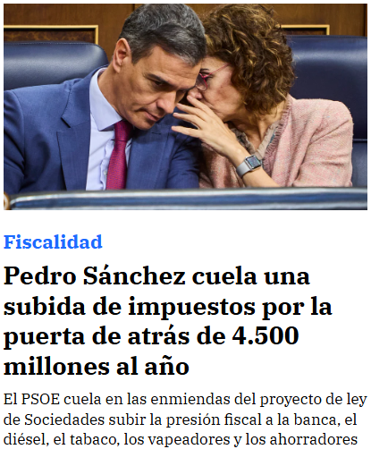 Eso sí, lo primero es lo primero: ratificar en el narco congreso que el ayatolá Sánchez I el Arribista es dueño de TVE y aumentar a continuación impuestos a la casta paria asalariada para pagar las corruptas nuevas nóminas de la televisión española que se ha comprado el rey y ayatolá hispanocatalán Sánchez I el Arribista sumo sacerdote de la secta psoe.