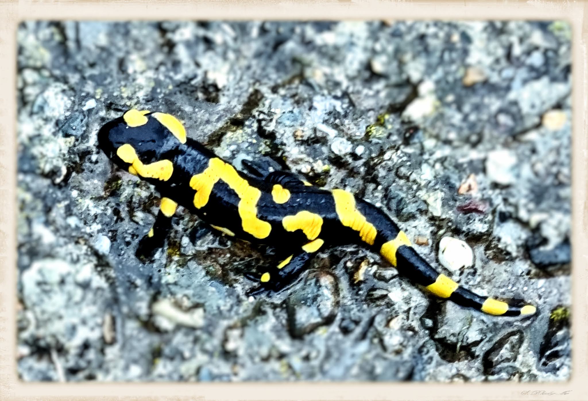 Y te encuentras un hermoso juguete por el camino, una cría de salamandra que se queda inmóvil como un juguetito abandonado.