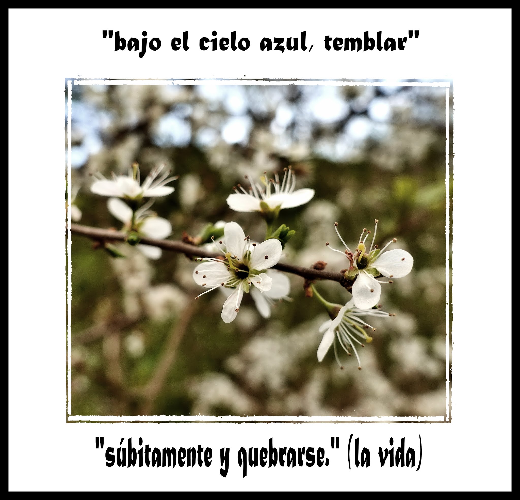 Yo quisiera eso, ser sutil para quebrarme bellamente en un temblor del ojo azul del cielo que no juzga. Como esas flores pequeñitas que viven tan solo un poema. Sin embargo, mi muerte será tosca, levantaré una nube de polvo en el camino. Sé que no puede haber belleza en la muerte si la vida ha sido… No sé, me avergüenza escribirlo. La vida no debería durar lo que dura, que fuera solo suficiente. No es necesario todo esto… Compraría un alma para vendérsela al diablo por ser efímero y súbitamente romperme. Ser un breve poema rasgado que en dos palabras describa la vida y la muerte con una frágil belleza. Y bajo el azul cielo, no descomponerme. Solo deshacerme y ya… Sin decrepitud, sin más decrepitud.