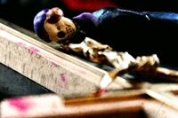 Y mi pene sagrado la santificó en la hora de su agonía; fue su extremaunción con una polla divina. Mi amor sudaba sangre con su último orgasmo.