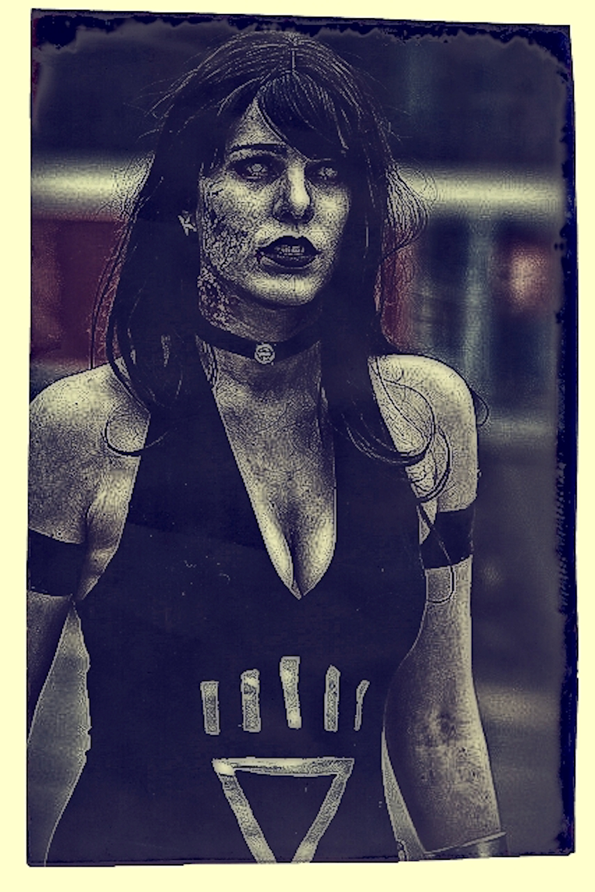 La Dama Oscura se acerca caliente, sin un solo vello en su vagina que se muestra por debajo de una falda que no es más que un concepto, una trampa sexual para atraer la atención a su coño. Su raja abierta, dilatada, está brillante de viscosa humedad. Su chocho tiene hambre. Cuando pienso profundamente en mí mismo, entra en celo, se calienta. Hay alguna conexión entre mi maldad y su coño de la que ninguno de los dos podemos escapar.