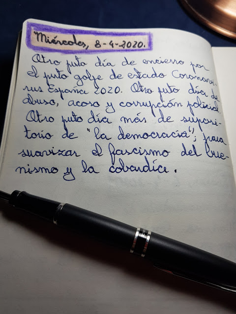 Y así, en dos semanas el nuevo y normal fascismo español con sus infantiles votantes, vencerían y erradicarían el coronavirus cambiándolo por una epidemia de cáncer de piel que los mataría a todos lentamente y aplaudiendo a sus respetados caudillos y sus decretos de mierda; dejando (con un poco de suerte) espacio a nuevas generaciones con una mejor y mayor madurez mental y dignidad.